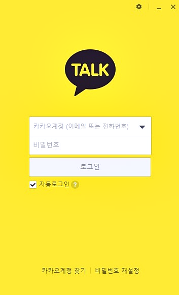 위에서처럼 설정을 끝내주시면 설치가 금방 완료되는데요. 설치가 끝나면 이렇게 생긴 카카오톡 메신저가 자동으로 실행됩니다. 혹시나 마지막에 체크를 해제하셔서 자동으로 실행되지 않는 분들은 직접 실행시켜주시면 되겠습니다.