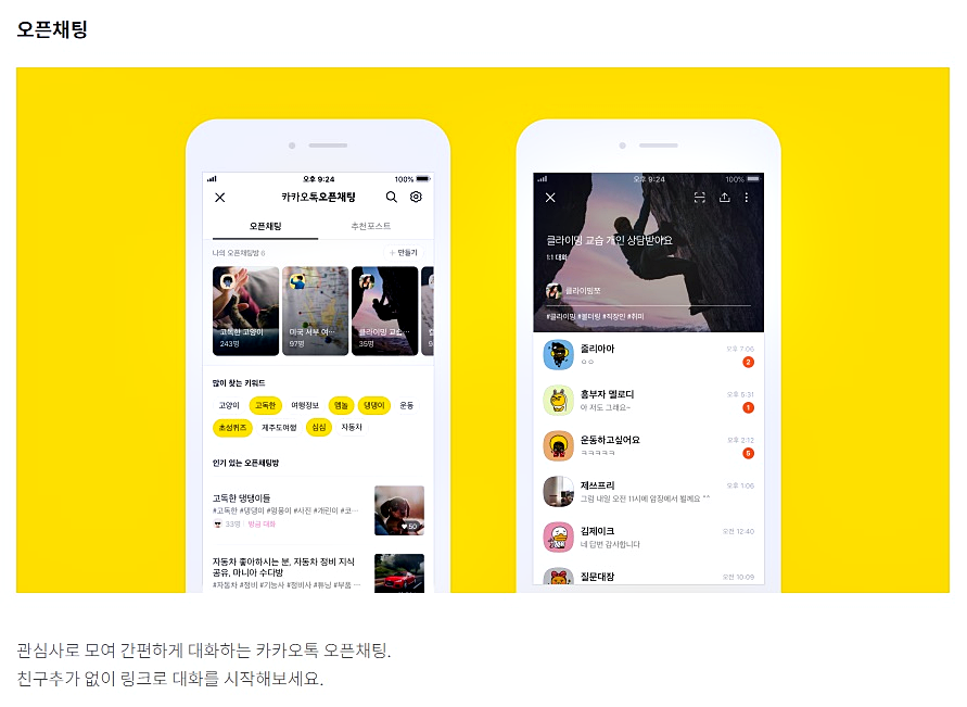 오픈채팅은 원하시는 키워드를 입력함으로써, 같은 뜻을 가진 사람들이 모인 오픈채팅방을 쉽게 찾고, 소통까지 할 수 있는 좋은 기능인데요. 수능, 토익, 자동차 등 다양한 목적의 키워드를 검색해보세요. 뜻이 같은 사람들끼리 쉽게 모일 수 있다는 것은 정말 좋은 점인 것 같습니다.
